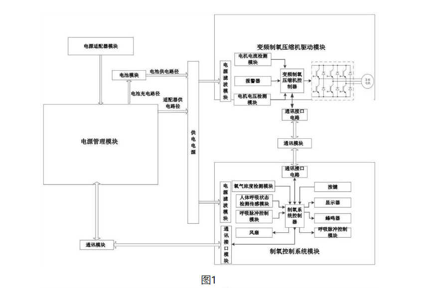 | 圖1為本實用新型實施例的制氧機的結構框圖; |